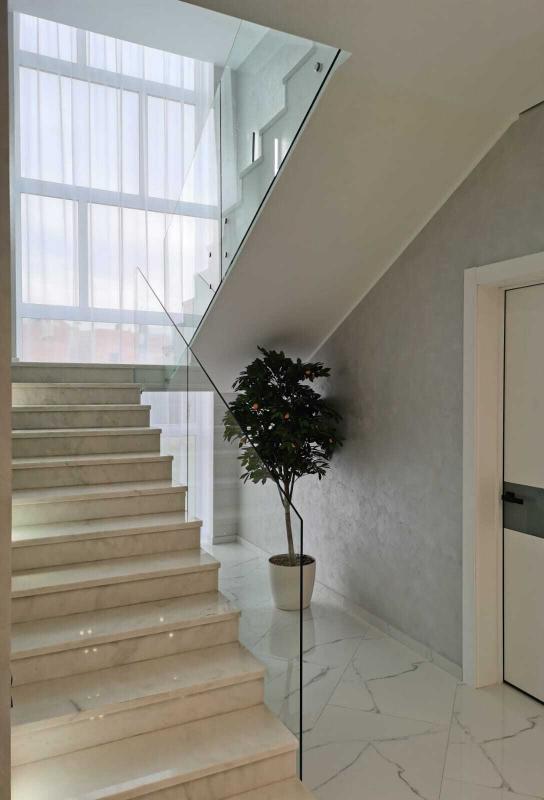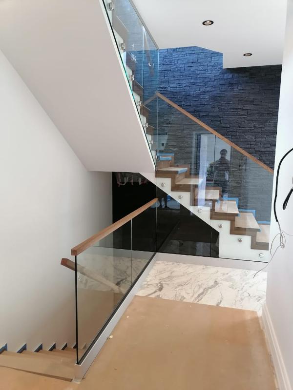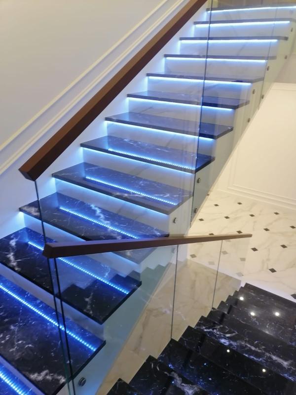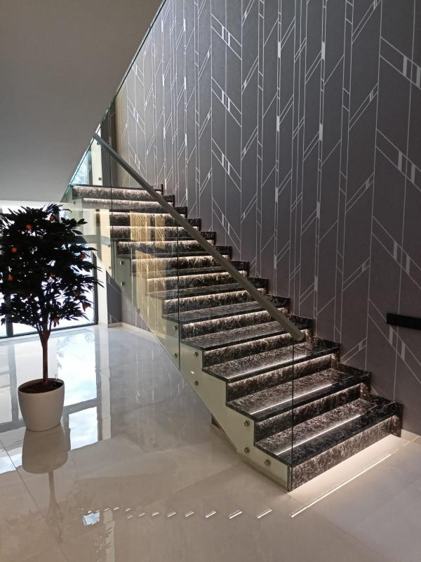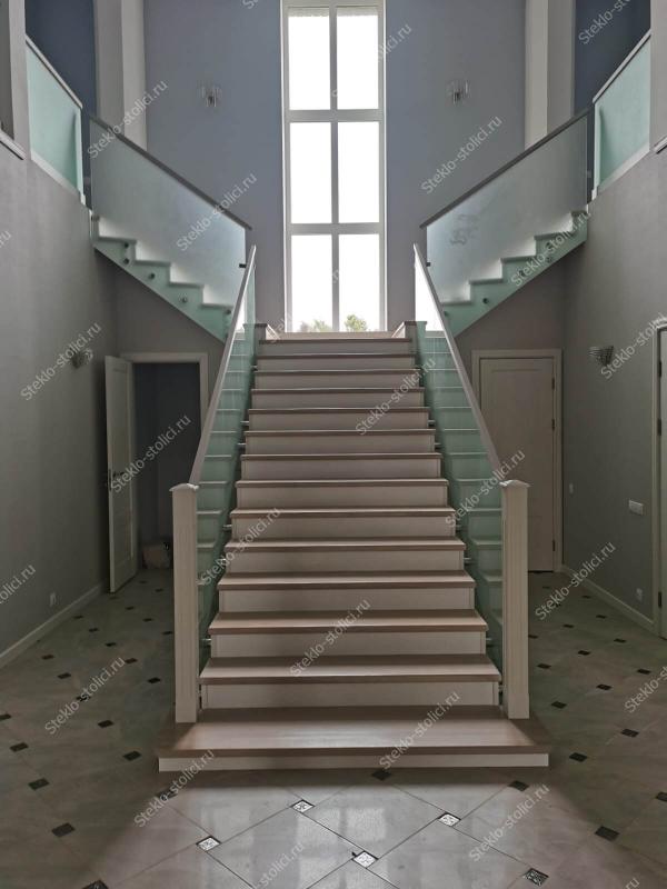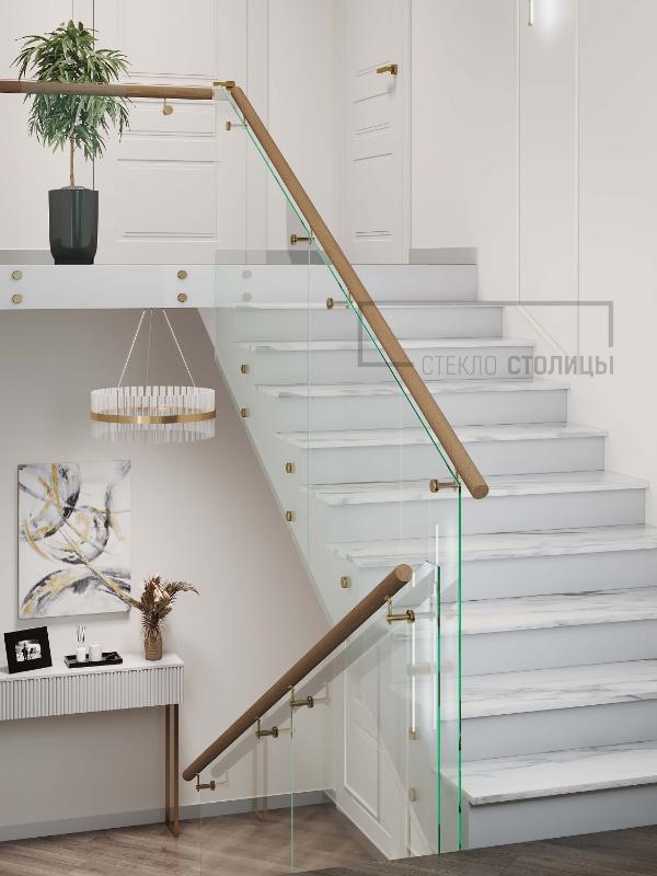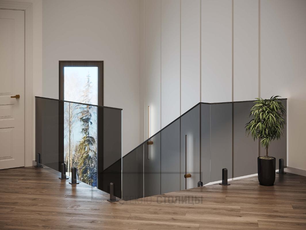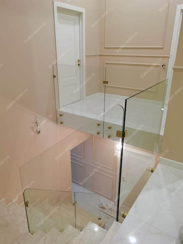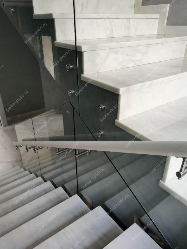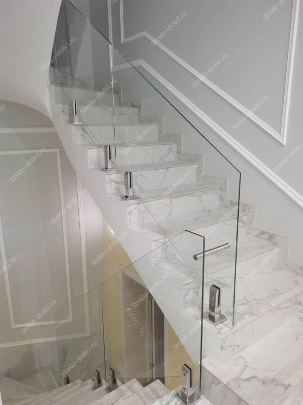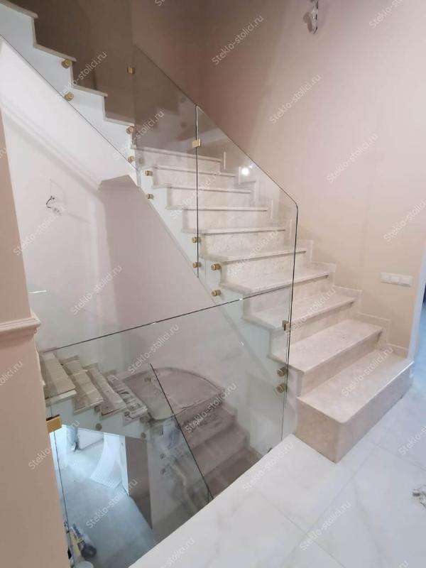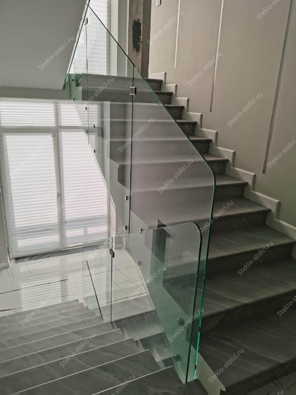 По толщине у нас есть все основные варианты, это стекла от 10мм до 16мм, в случае с триплексом от 5+5мм до 8+8мм. Для винтовых лестниц мы используем гнутое (моллированное) стекло.