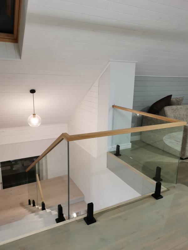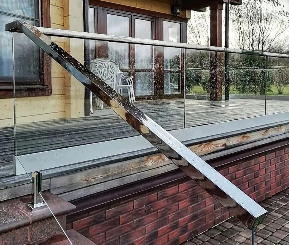 По типу установки — поручень может одеваться сверху на стекло или может быть установлен на выносных кронштейнах